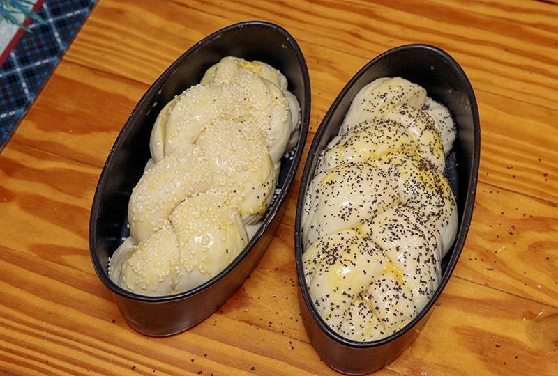 This Jewish bread, traditionally eaten on special holidays and Shabbat, is as delightful to make as it is to eat. You can eat it plain by itself or serve it with accompaniments such as an eggplant dip or olive tapenade. The ideal texture of the unbaked challah dough should be fluffy and airy, but it should also be stiff enough to be rolled to achieve its characteristic braided design.