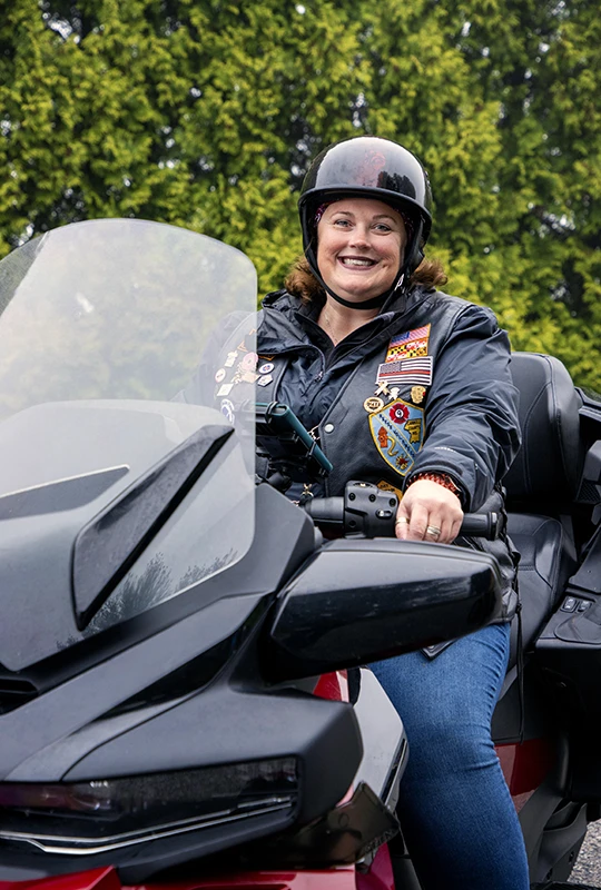 Townsley, 46, bought a fully loaded 2023 Spyder trike, which she named Scarlet. Her road name is Lady Kate, and her 75-year-old mother, who occasionally joins her as a passenger, goes by Queen Anne. Many of Townsley’s rides are related to philanthropic activities, like Donuts for Dispatchers, Wreaths Across America and others that support first responders, military and law enforcement causes.