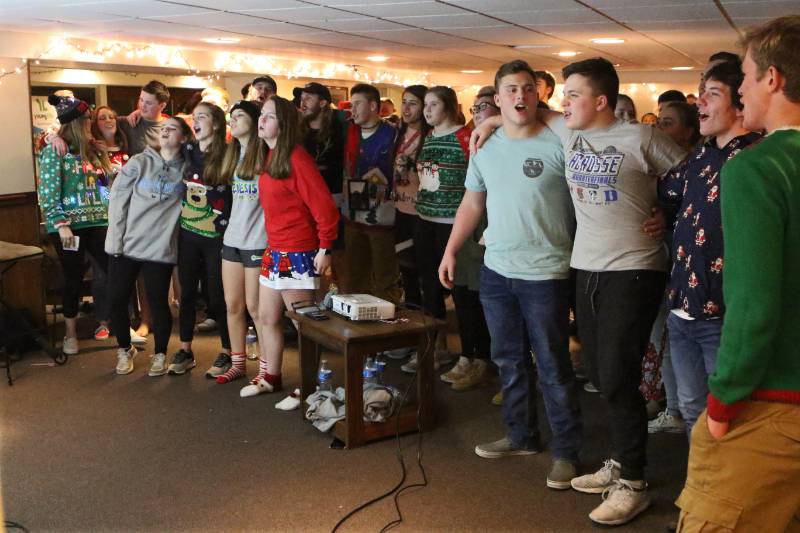 - Youths sing “Lean on Me” during a Young Life All-Area and Alumni Christmas Club event in Westminster.