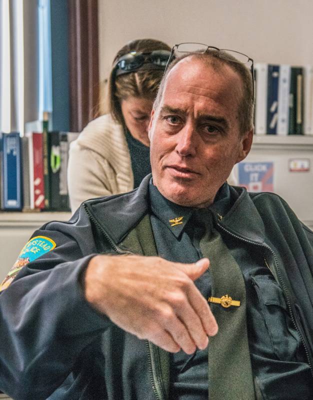 He should know. He came from the larger police force in Lower Merion Township, Pa., (estimated 2016 population of 58,288) near Philadelphia to work for Hampstead. One of the reasons for the change was that as be moved up the ranks in the Lower Merion Township police, he did less “retail policing.”