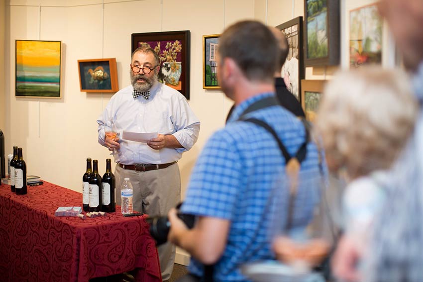 Film Lovers in Carroll County (FLICC) hosted a screening of the 2008 film “Bottle Shock” on Friday, September 15, at the Carroll Arts Center. The evening’s audience was welcomed, via Skype, by Marcus Notaro of Stag’s Leap Wine Cellars, the creators of the winning cabernet in the films infamous blind tasting. The event also included a guided wine tasting by Bernie Vogel. – photography by Kelly Heck