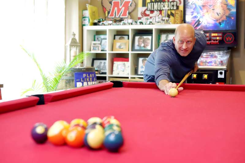 For Eldersburg resident Jason Nimorwicz, his basement man cave is all about the nostalgia of his teenage years during the 1980s. The room is a hodgepodge of things — record albums, pinball machines, video games, a pool table and a theater, but the central theme is things that have meaning to him from years gone by. For example, during a purge of clutter in their basement three or four years ago, Jason said he came across dozens of record albums from his youth.