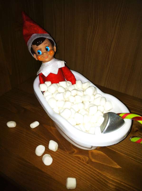 For anyone not tracking – Elf on the Shelf is a little elf doll that traditionally comes out between Thanksgiving and Christmas and it keeps tabs on the children in the house reporting back to Santa on who is being naughty and nice. The excitement of the Elf, for the children, is that the Elf tends to get into trouble and each morning when the children wake up, they get to find the Elf and see what mess he’s created. For the parents, there is the nightly task (when many are already exhausted by all that comes with life over the holidays and at the end of the year) of tapping into our creativity banks to make sure the kids wake up to something entertaining.