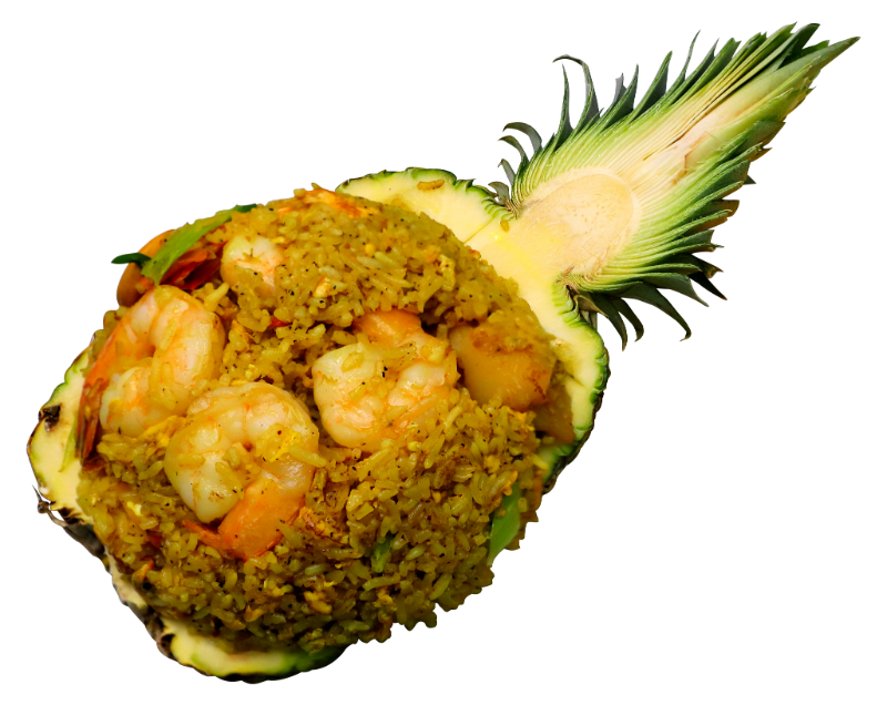 Speaking of his menu, Tim is proud of the fact that the majority of his nearly 100 dishes are authentic Thai cuisine. His most popular dish, he says, is Pineapple Fried Rice — featuring steamed jasmine rice sautéed with yellow curry powder, egg, shrimp, cashew nuts, tomato, onions, scallions, and fresh pineapple — all piled high on a half-pineapple shell. The flavors in this dish are a mesmerizing balance between savory and sweet.