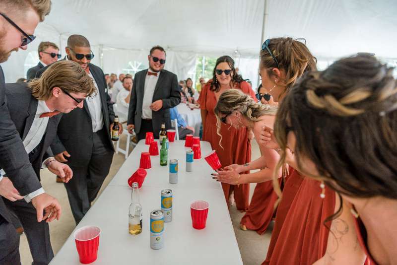 David said unique is in. That’s what the Edwards wedding offered. “The bridesmaid and groomsmen entrance to the ceremony was a flip cup game entry,” she said. “Like the college drinking game where cups are set up with a little bit of alcohol, the first person drinks it and flips it until it lands on the base. The next person can’t drink until the person in front of them flips the cup. It hyped up the crowd before we came in and people seemed to love it!”