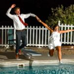 Perhaps the most unique part of the Edwards wedding was at the reception, when the bride and groom jumped into the in-ground swimming pool, inviting guests to join them.