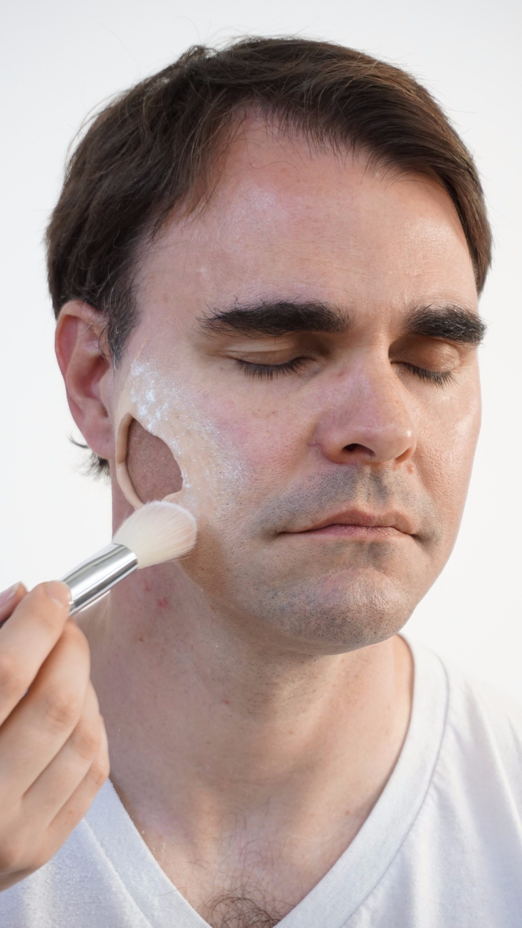 - 1. Apply layers of foundation to achieve desired level of paleness