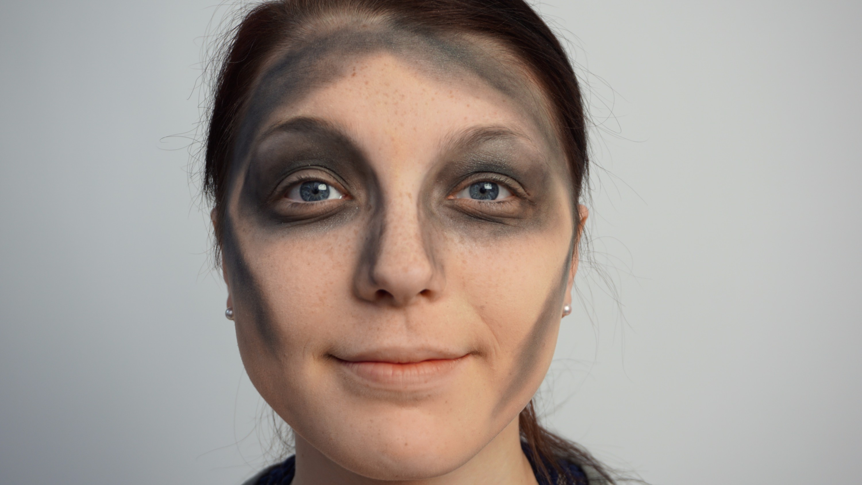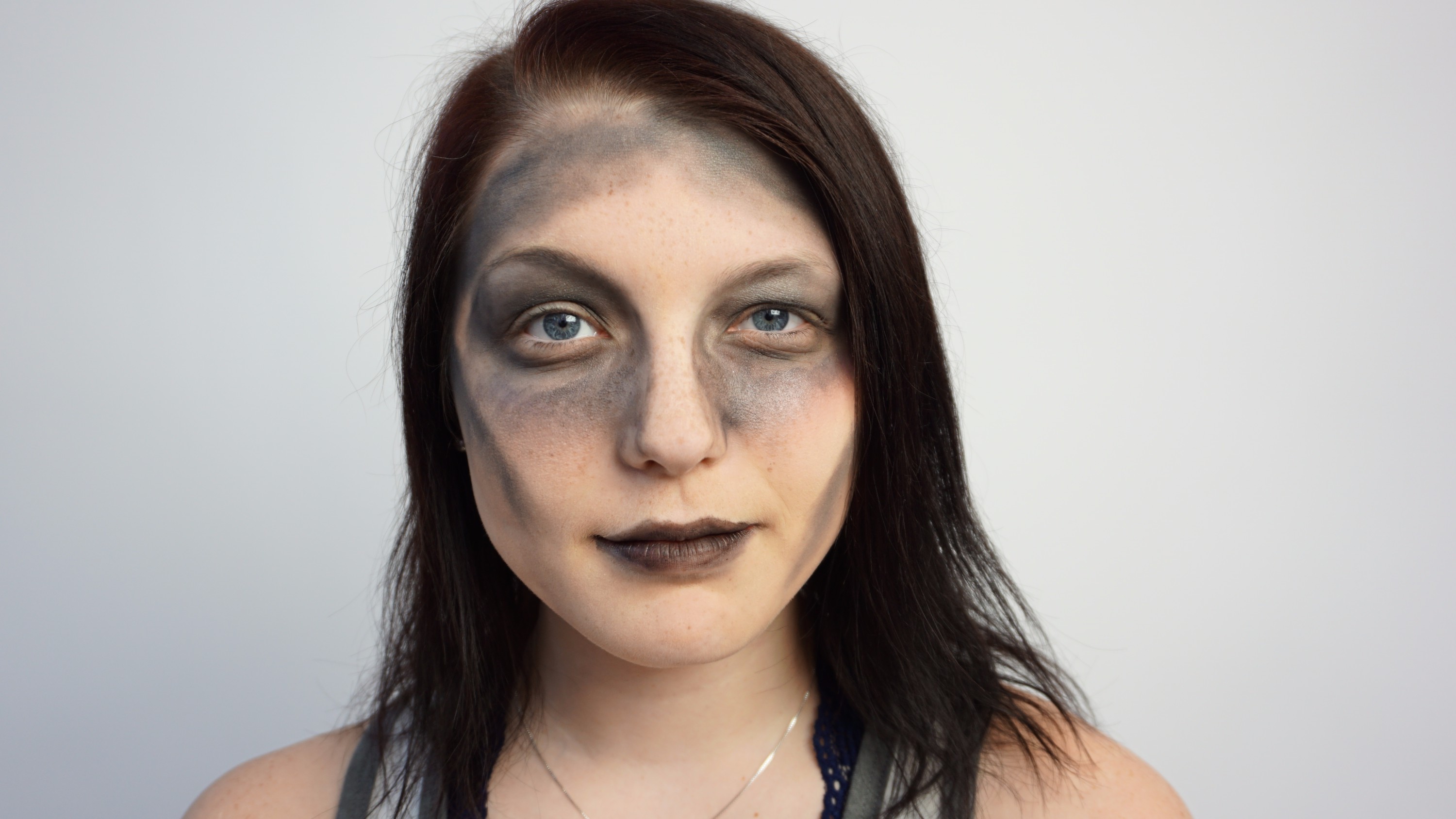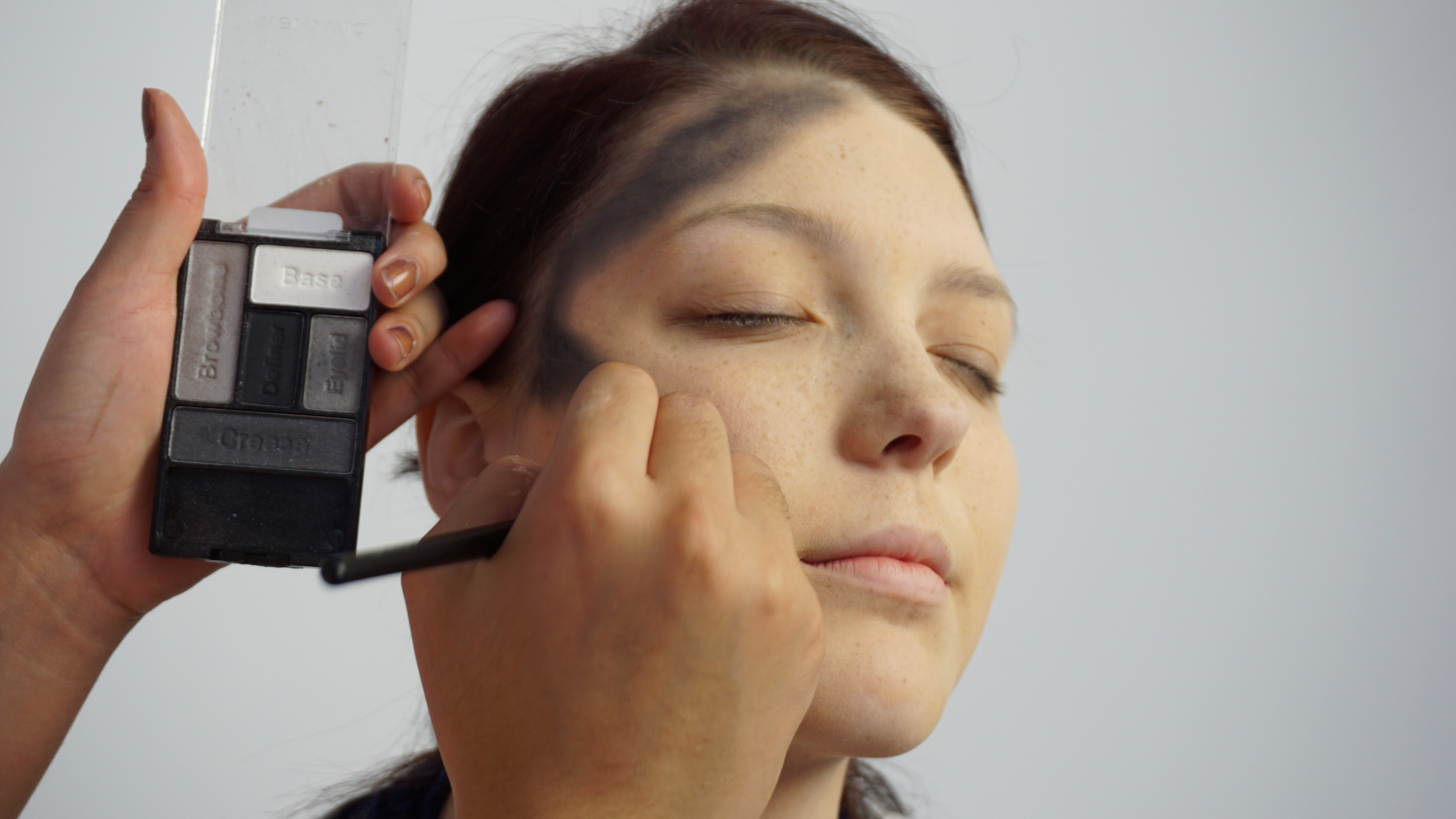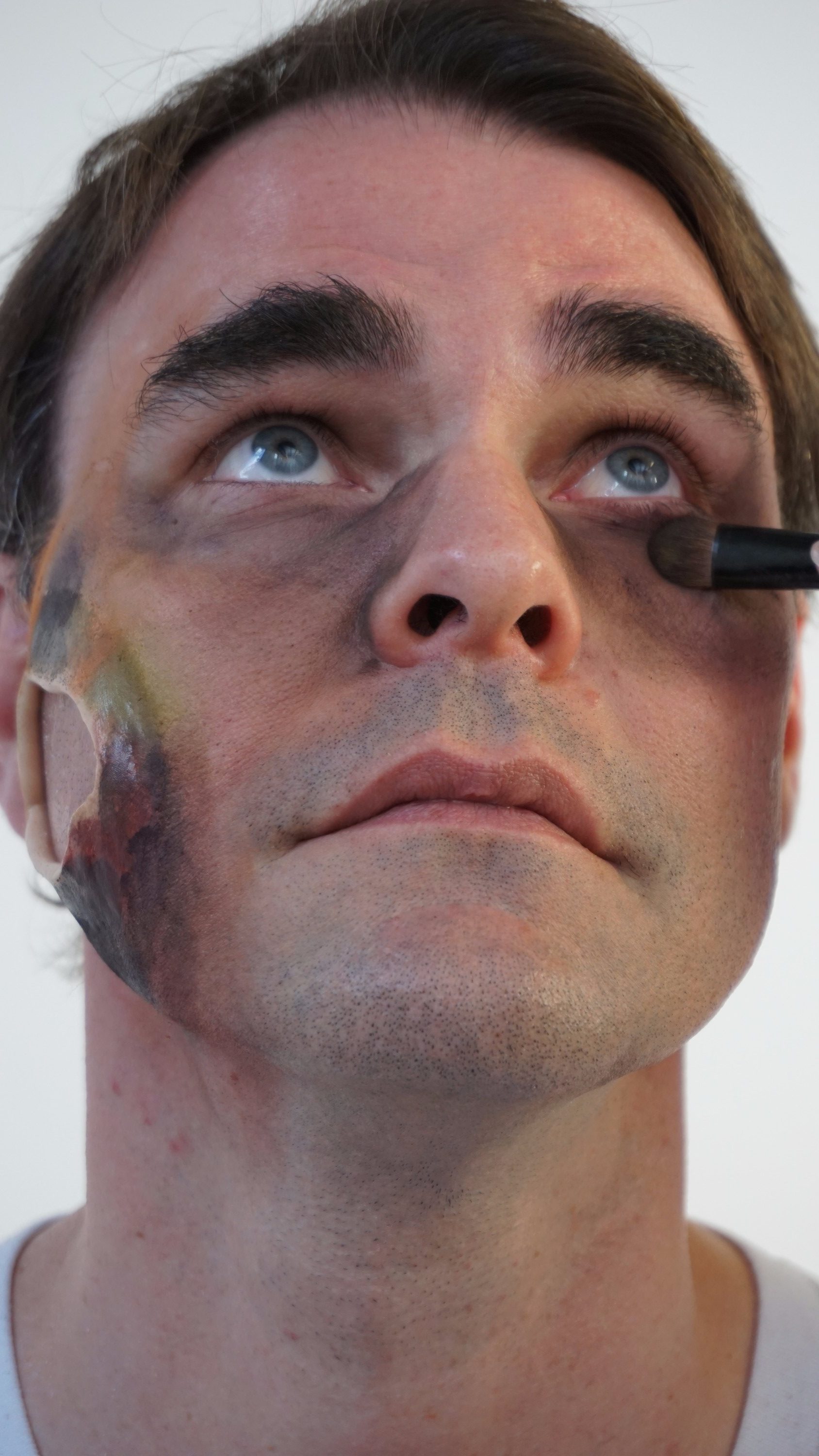 - 8. Begin applying dark eyeshadow to face for additional bruising